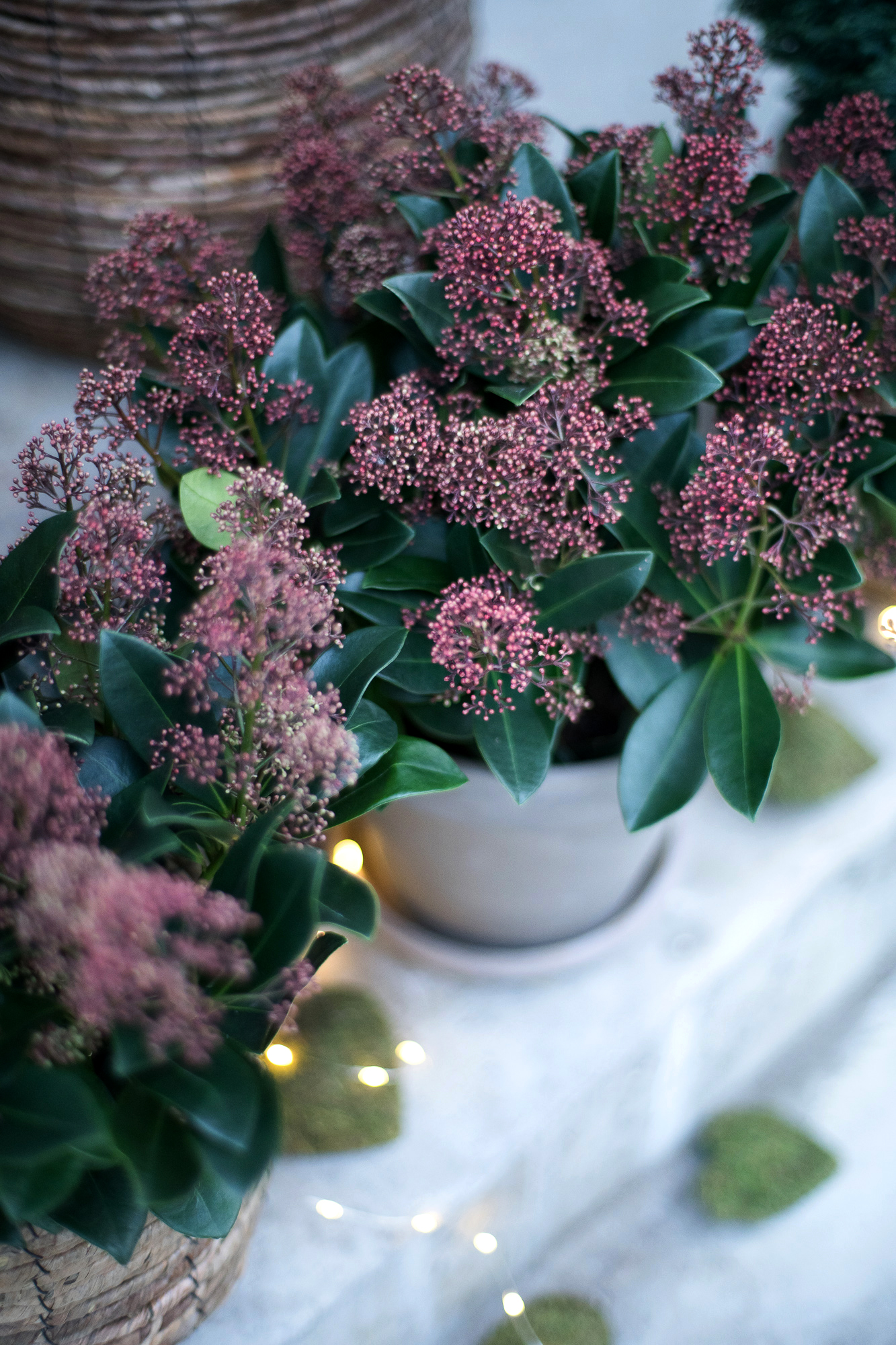 Tips! Mot jul er det ekstra fint å pynte Skimmia med en liten lyslenke.