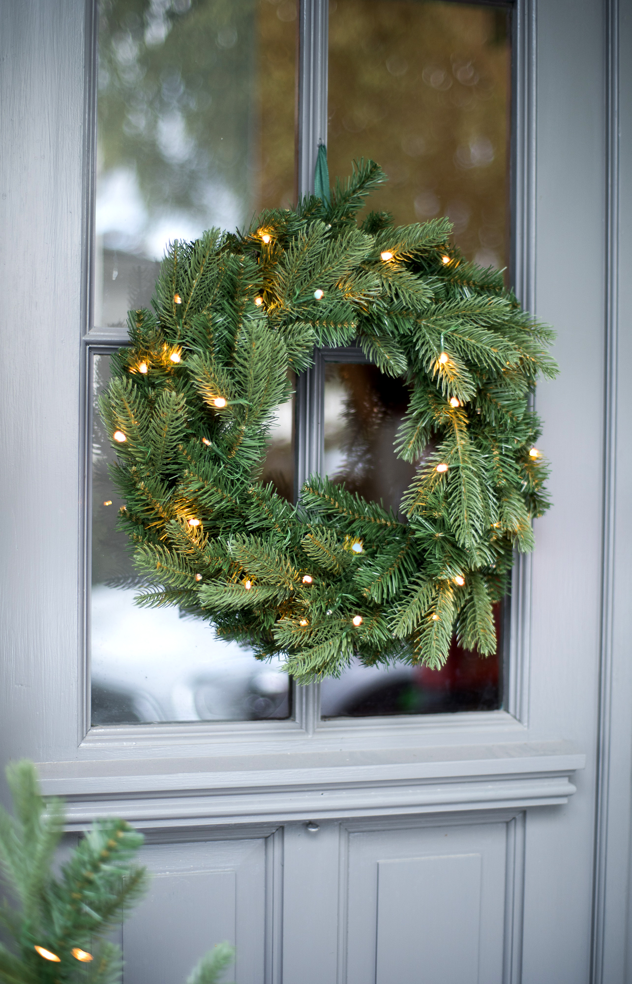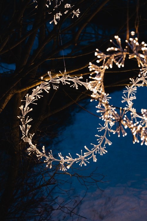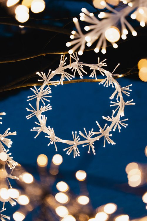 I år vil vi henge en krans på inngangsdøren og ramme den inn med et girlander. Vi har flere kunstige, men naturtro varianter med belysning. For å understreke den lune stemningen kan du supplere med et par skinnfeller.