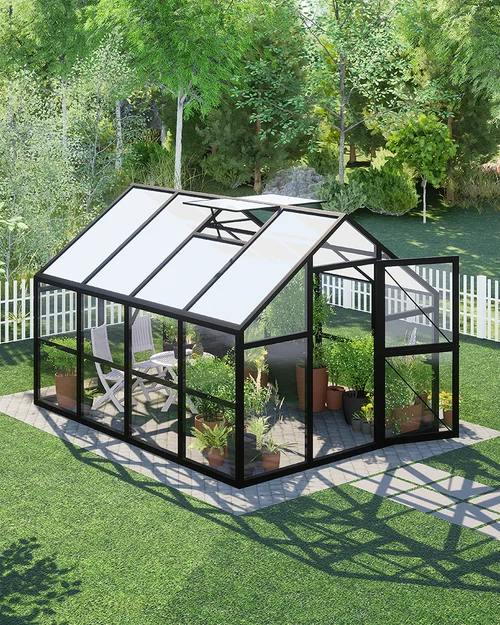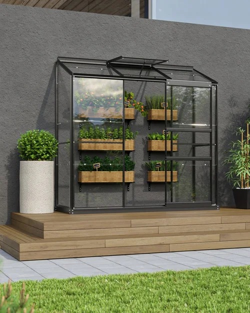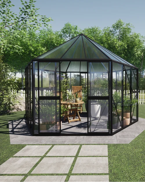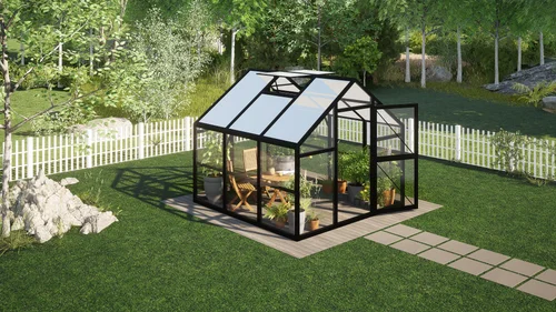 Et drivhus er ikke bare et sjarmerende syn; det er kjøkkenhagens hjerte. Her forlenger du vekstsesongen med mange måneder. Start plantingen tidlig om våren og fortsett til langt utpå høsten.Basilikum og andre urter kan du nærmest dyrke hele året. Start innendørs og flytt småplantene ut i drivhuset når temperaturen tillater det. Det lønner seg å vente til nattefrosten er over, eller du kan bruke tilleggsvarme den første tiden.