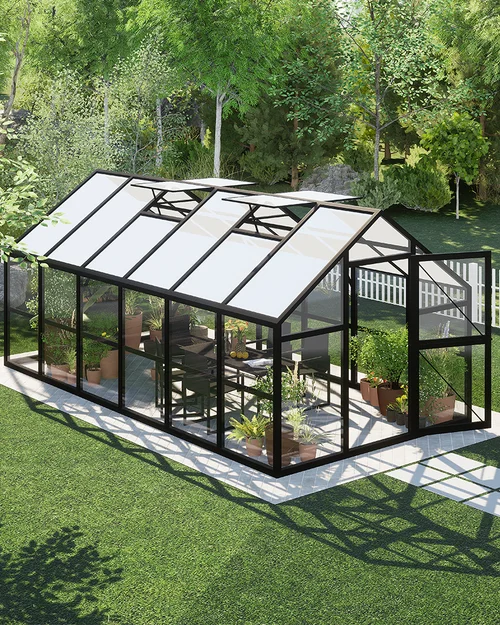 Start plantingen tidlig om våren og fortsett til langt utpå høsten. I drivhuset er temperaturen lunere og luftfuktigheten høyere. Dermed kan du blant annet dyrke blomster, eksotiske planter, grønnsaker og frukt som vanligvis mistrives i det norske klimaet. I tillegg beskytter huset mot skadedyr og skiftende vær. Det gir ekstra store avlinger!
