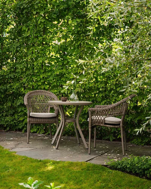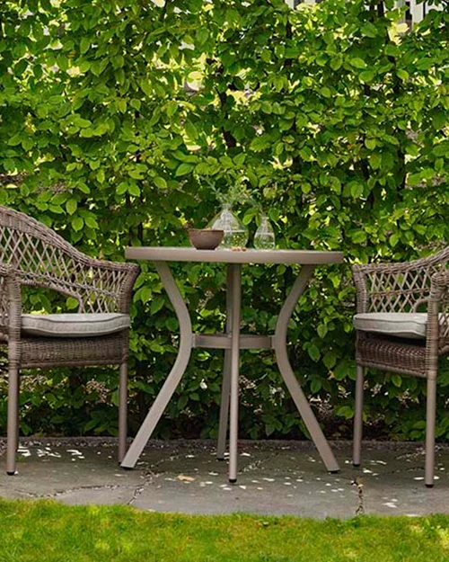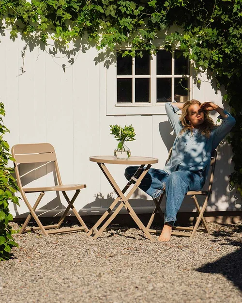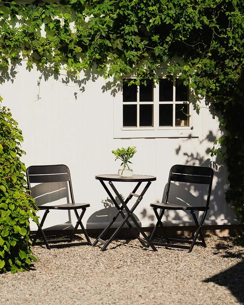 Et lite kafésettkafésett passer godt inn på alle små uterom og er perfekte som balkongmøbler. Kafésett er så hyggelig å plassere der morgenkaffen skal nytes eller som en liten spisegruppe ute i et svalt område av hagen.
