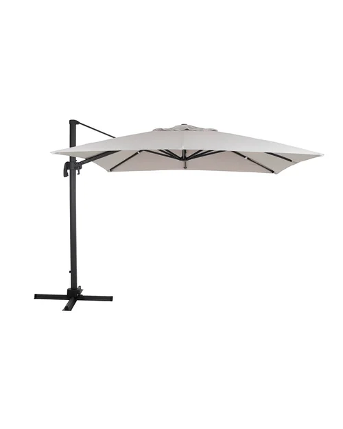 Solar Flex er en friarm-parasoll på 300x300cm med duk av polyester og et solid stativ i aluminium. Duken har UV-filter som tilsvarer solfaktor 50. Solar Flex kan roteres 360 grader, skråstilles i bakkant og tiltes sideveis. På den måten blir det enkelt å skjerme for kveldssolen!