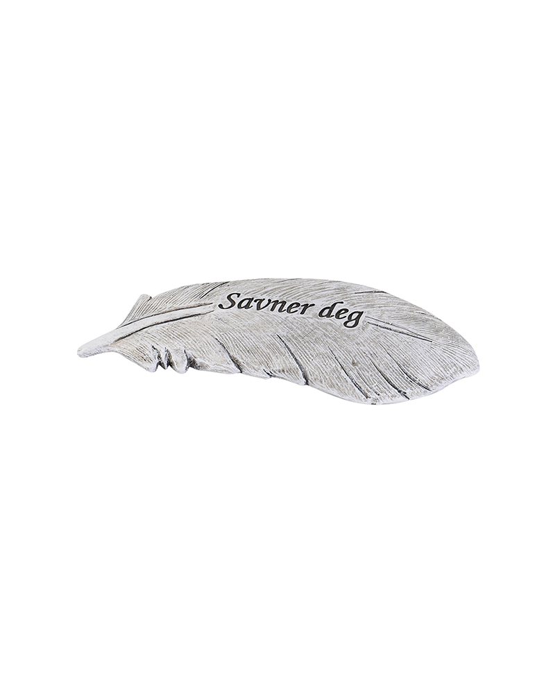 Gravpynt fjær med tekst "Savner deg". En vakker pyntegjenstand til gravstedet.