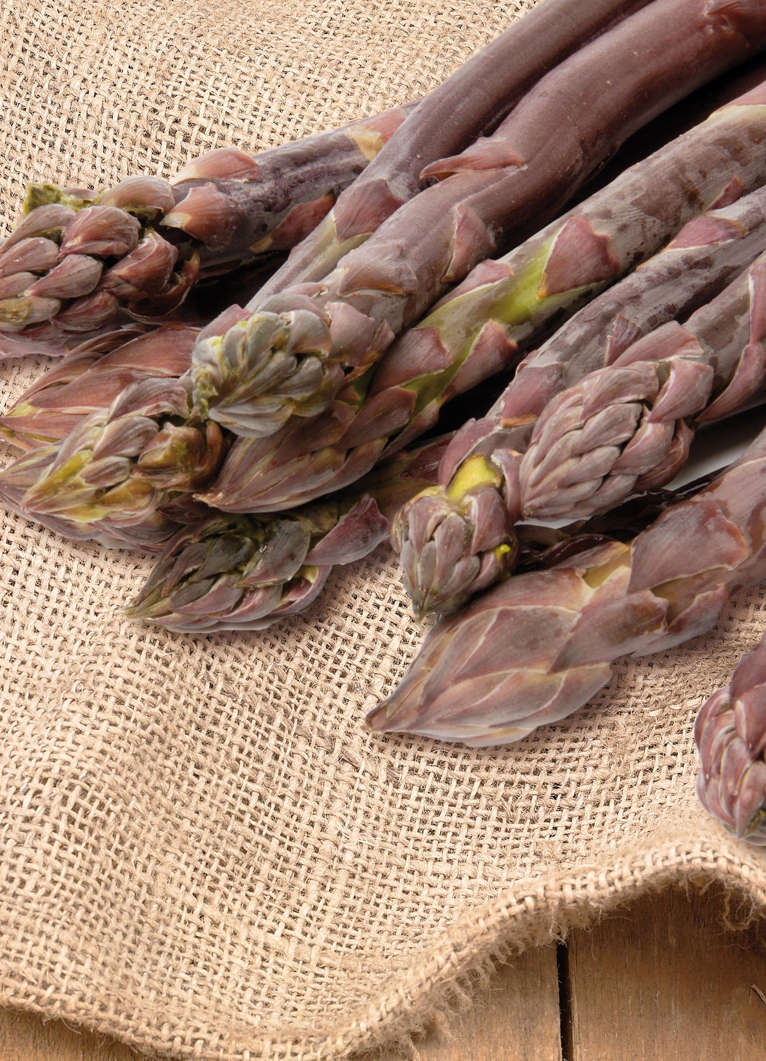 Asparges lilla 'Purple Passion', også kalt Asparagus officinalis, er en dekorativ og produktiv sort kjent for sine tykke, søte purpurskudd med mild smak. Den trives i dyp, sandholdig og næringsrik jord på et lunt og solrikt sted. Vann jevnt i etableringsfasen, hold bedet ugrasfritt og gi gjødsel om våren. La plantene vokse fritt de to første årene før du begynner å høste forsiktig i tredje sesong.