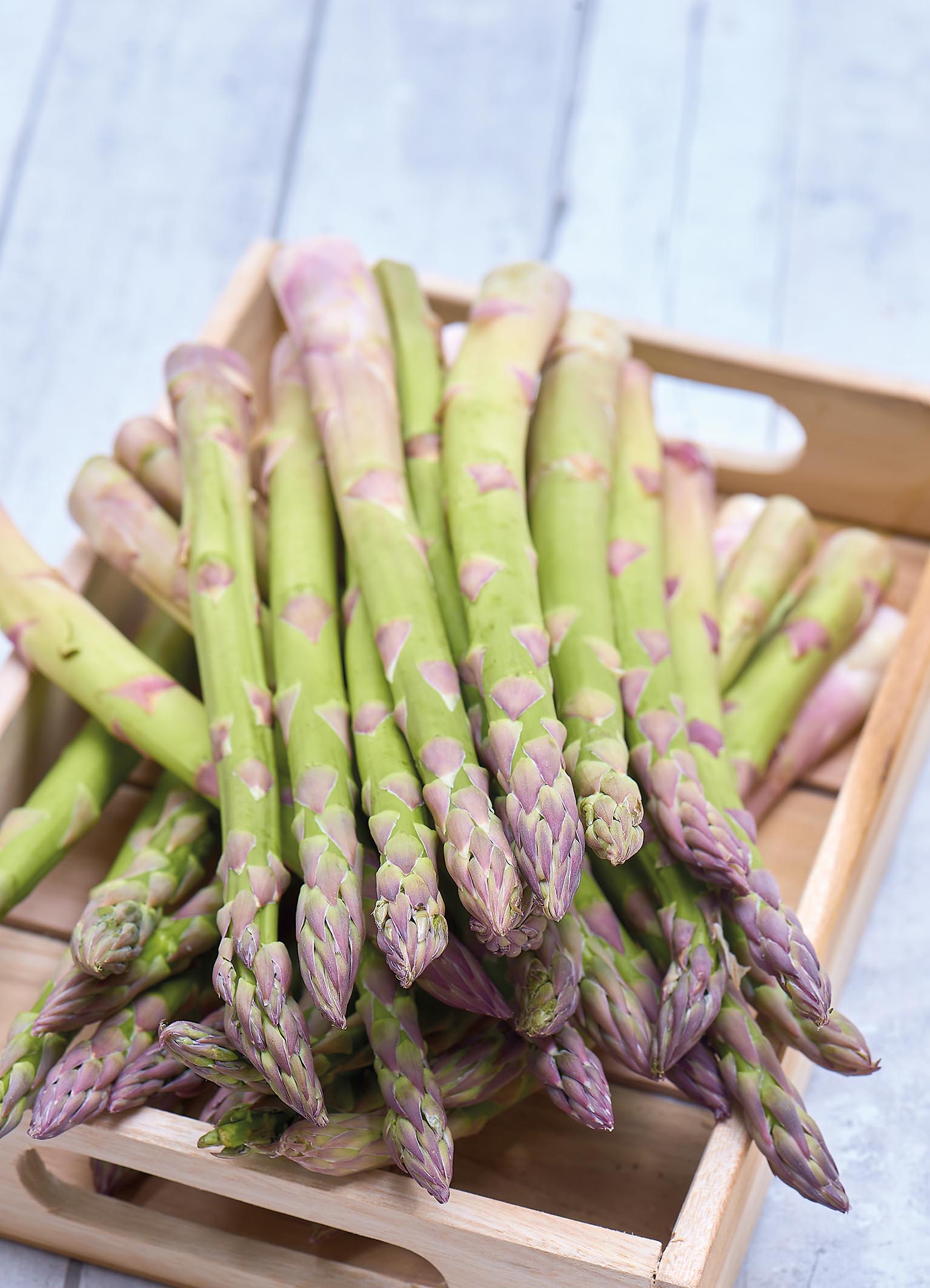 Asparges lilla 'Roem van Washington', også kalt Asparagus officinalis, er en tradisjonsrik og smakfull sort kjent for sine rette, mørklilla skudd med mild og søt aroma. Den er robust, gir god avling i nordisk klima og egner seg godt både i kjøkkenhage og flerårige bed. Plant i dyp og næringsrik jord på et lunt, solrikt sted, vann jevnt i etableringen, hold ugress nede og gi gjødsel om våren. La plantene vokse fritt de to første årene før høsting starter varsomt i tredje sesong.