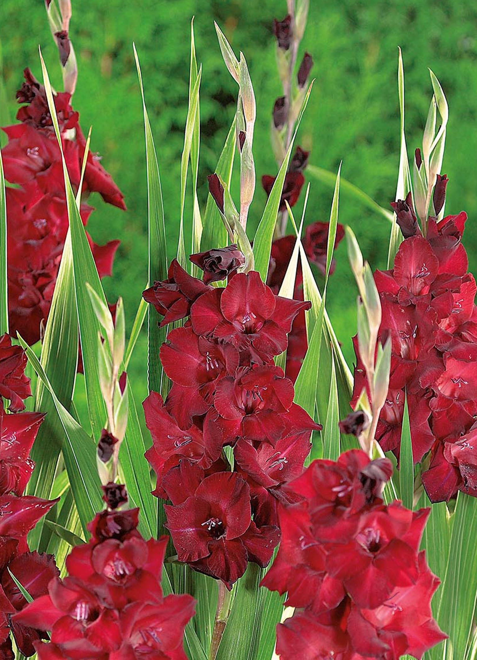 Gladioler Tavira er en elegant og tidligblomstrende sort med store, vinrøde blomster. De lange, rette stilkene gjør den perfekt både i bed og som snittblomst. Plant knollene i solrik, lun plass i næringsrik og godt drenert jord når jorden er varm. Vann jevnt, bruk gjødsel om våren og støtt stilkene ved behov. Grav opp knollene om høsten og lagre dem frostfritt.