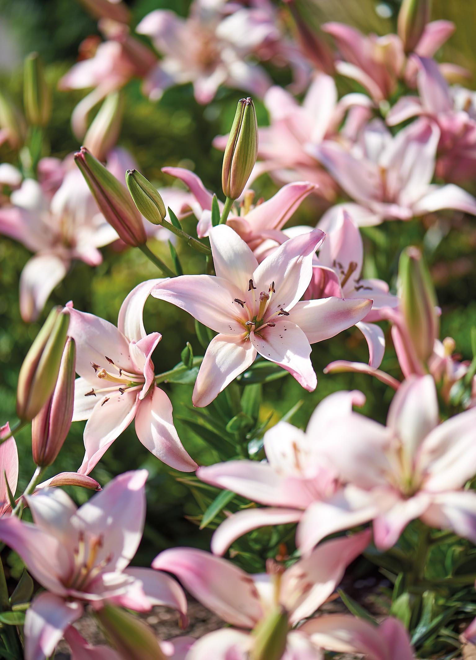 Kongelilje Easy Waltz, også kalt Lilium oriental hybrid, er en duftende og imponerende sort som får store kremhvite blomster med myke rosa toner og dekorative prikker. Den blomstrer sensommer til tidlig høst og gir et elegant, eksotisk preg i bed og krukker. Plant løken dypt i solrik, lun plass i næringsrik, godt drenert jord. Vann jevnt, bruk gjødsel om våren og gi støtte ved behov. La bladverket visne ned etter blomstring for å styrke løken før neste sesong.
