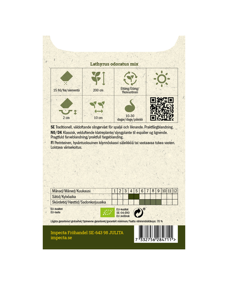 Tradisjonell, velduftende slyngplante til espalier og liknende. Praktfull fargeblanding. Dyrking fra frø: Forkultiveres innendørs i såjord. Settes i 18-20 °C, lyst og svalt etter spiring. Håndteres varsomt ved ompotting. Plantes ut etter herding når faren for frost er over. Toppes ved 7-10 cm for mer forgrenede planter. Kan også sås direkte på friland når jorden har blitt varm. Dyrkes i espalier eller liknende. Fjern døde blomster fortløpende for lengre blomstring.