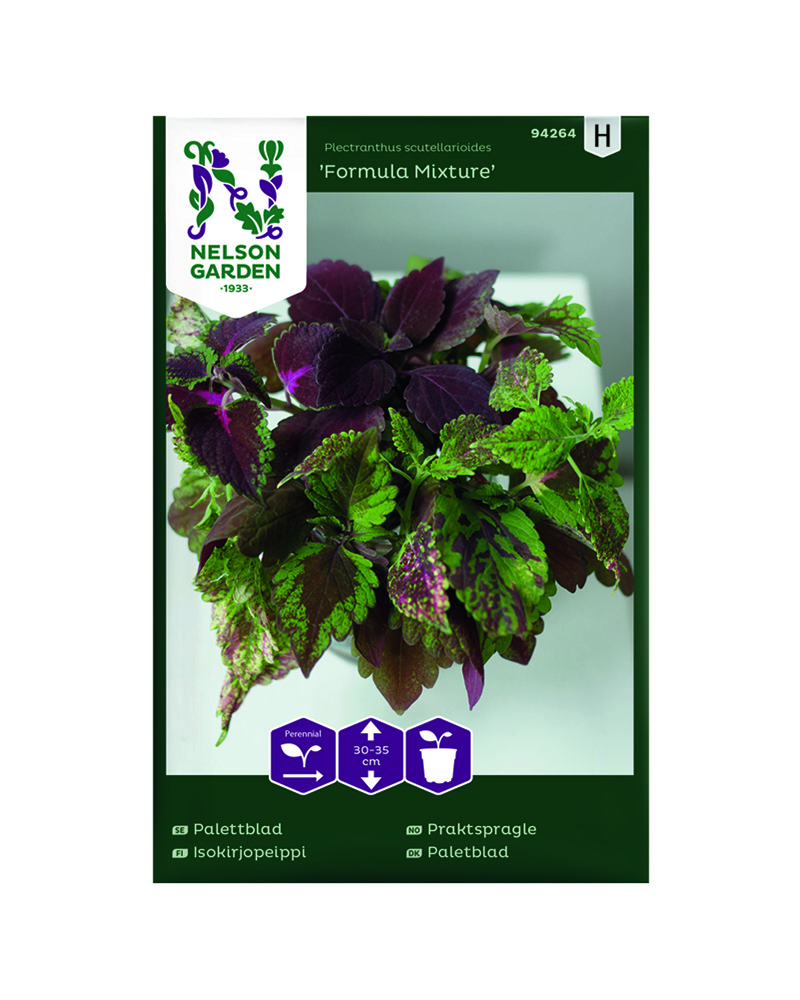 Denne blandingen gir planter med ekstra store blader og en rekke fargevariasjoner. Plassering på et solrikt sted gir bladene en mer intens farge. Dekorativ potteplante. Topp planten regelmessig, så blir den buskete.