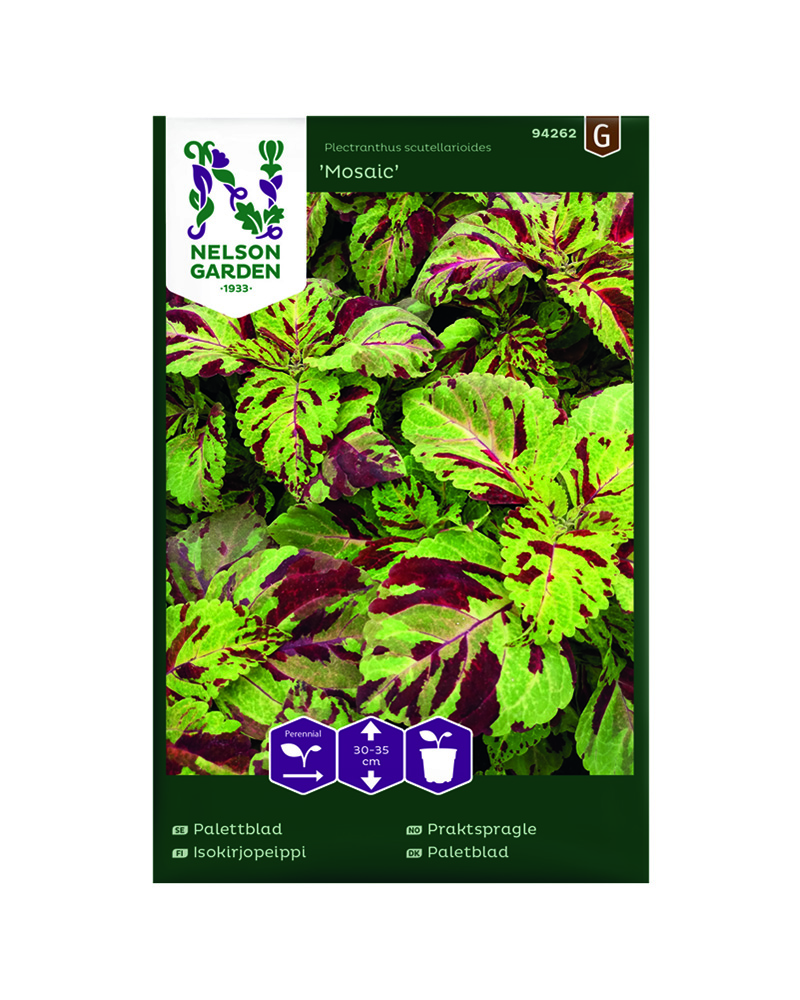 Veldig fine mosaikkmønstrede blader i fargene sitrongul, limegrønn og vinrød. Plassering på et solrikt sted gir bladene en mer intens farge. Dekorativ potteplante. Topp planten regelmessig, så blir den buskete.