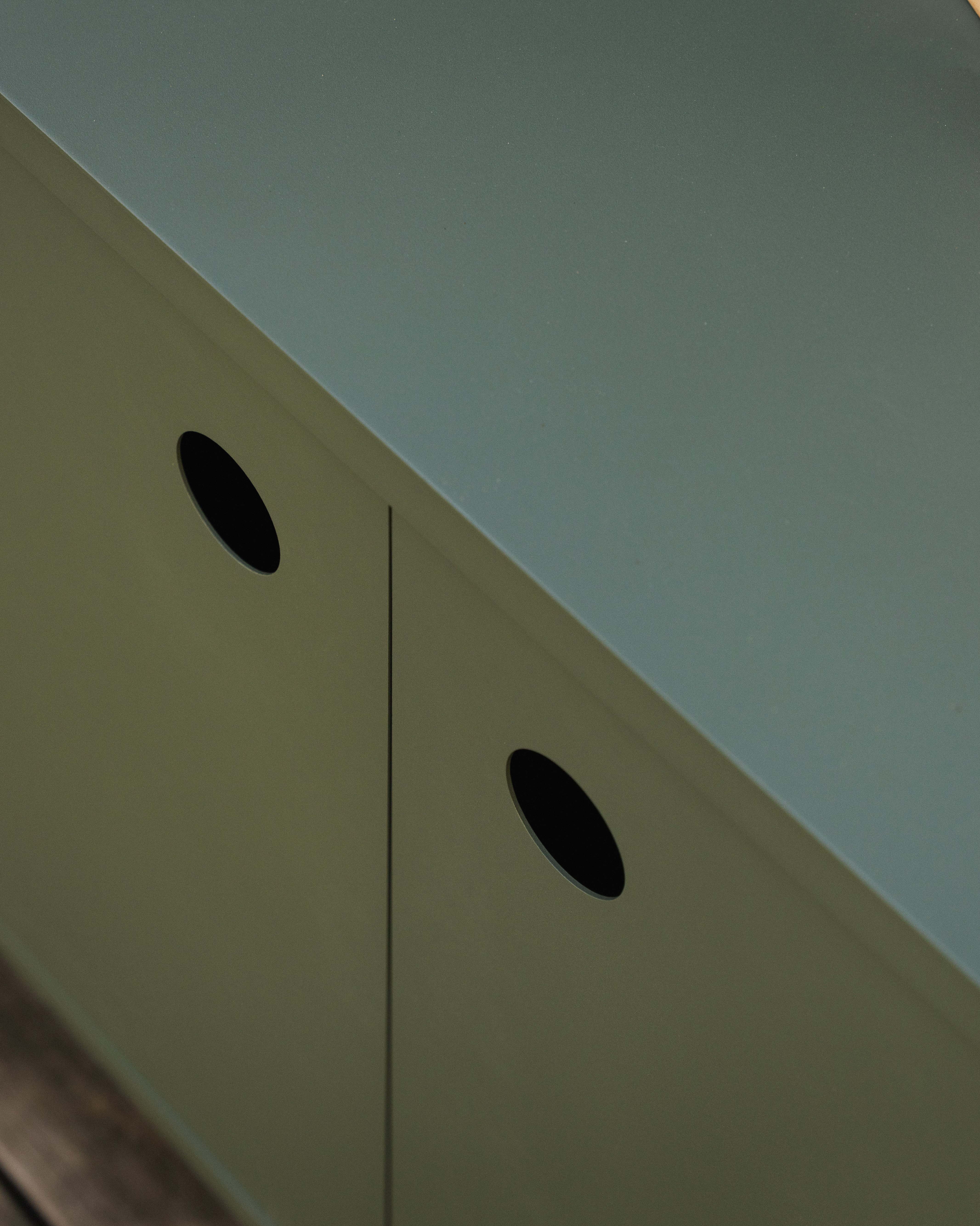Kelia er ett lekkert utekjøkken laget i pulverlakkert aluminium. Utekjøkkenet er robust og holder høy kvalitet. Gjør matlaging utendørs til en lek. Kommer i 3 ulike moduler, en med skapdører, en med åpne hyller og en med vask. Denne delen kommer med skapdører.