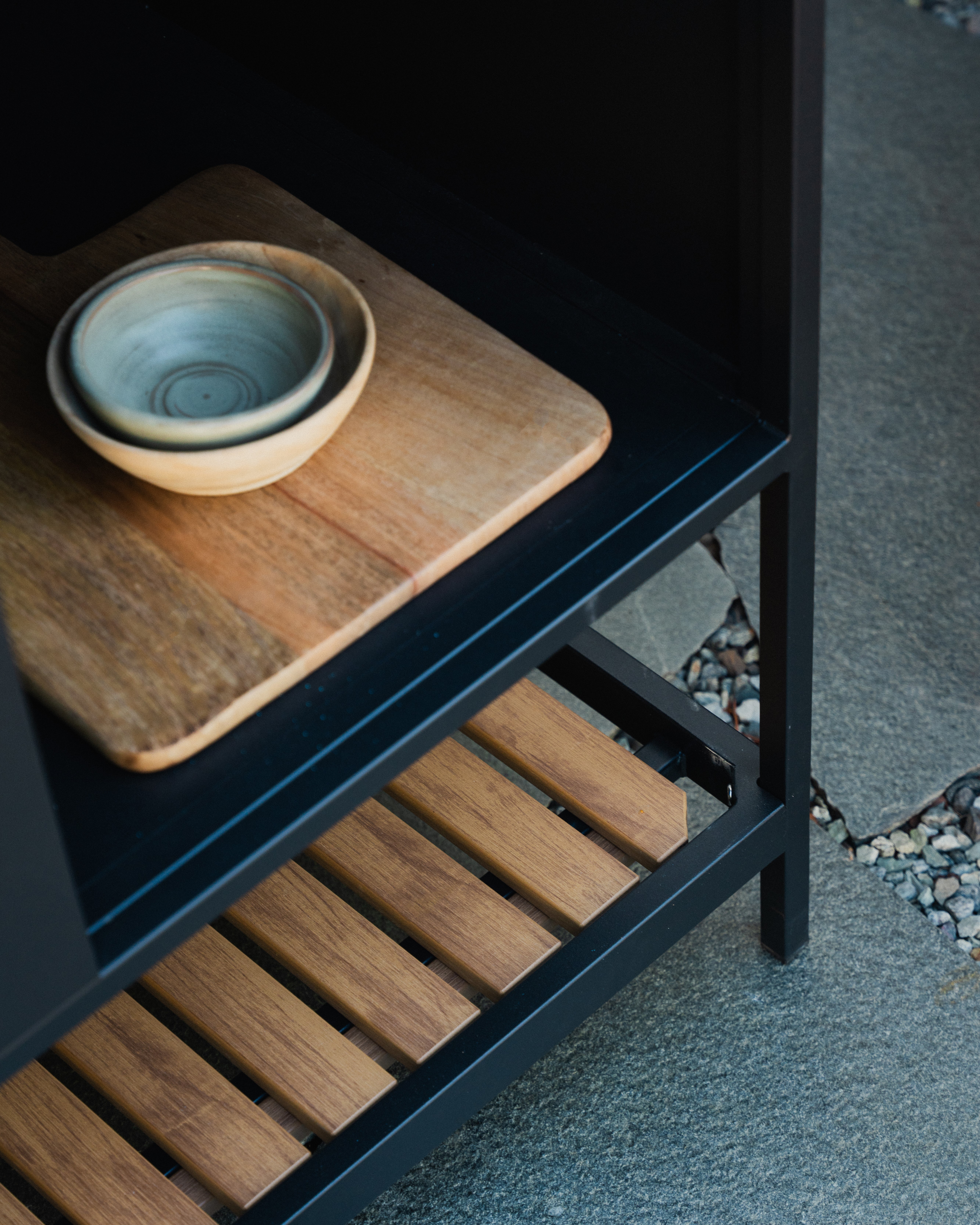 Prep er et lekkert pizzabord laget i pulver lakkert aluminium. Det har god arbeidshøyde, er solid, og kan brukes som en forlengelse av ditt utekjøkken eller som et frittstående element. Benkeplaten er i børstet aluminium. Hylle i non wood. B: 110 cm, D: 70 cm, H: 90 cm