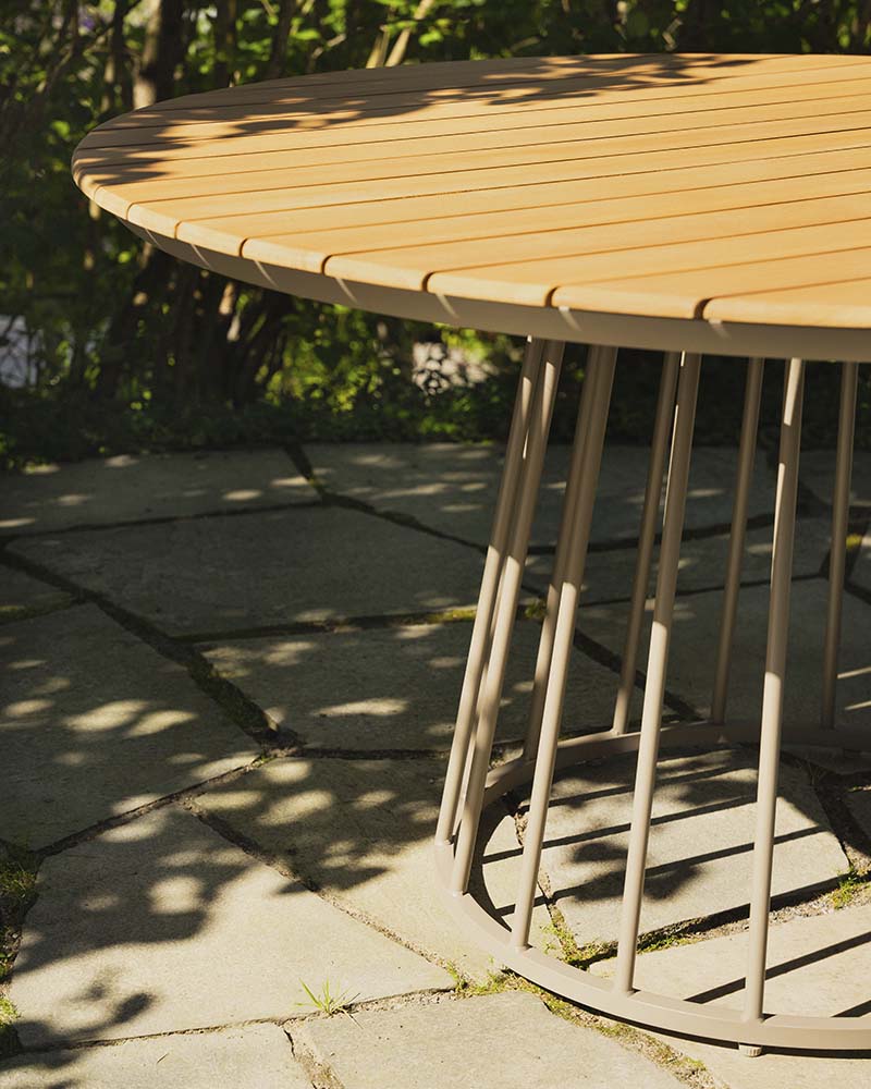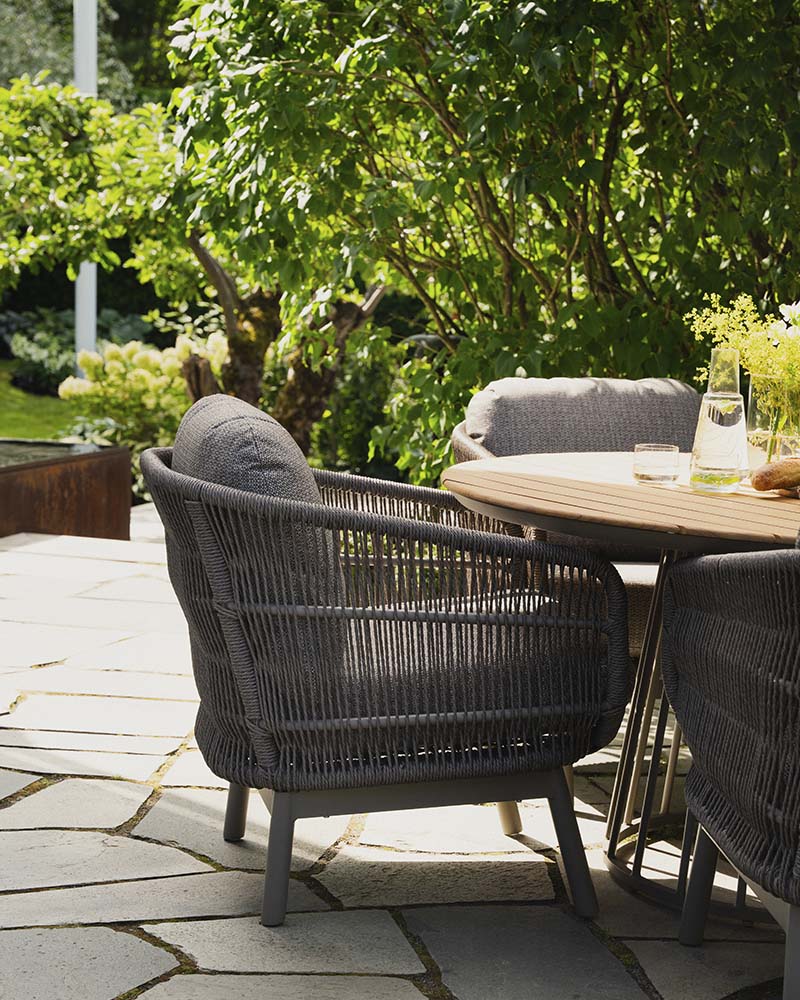 Amalie er en low dining spisgruppe. Den har svært høy sittekomfort, med tykke gode puter i mocca farge. De er vannavstøtende, impregnert og UV-behandlet 350 g solution-dyed polyester med TPU-liner. Rammen på stolen er i aluminium med kunstrotting i sider og i rygg. Amalie spisebord er et lekkert rundt spisebord, med aluminium ramme og teak bordplate.Mål: Bord 135x135 cm H73 cm Stol L82xB70,5 cm H75 cm