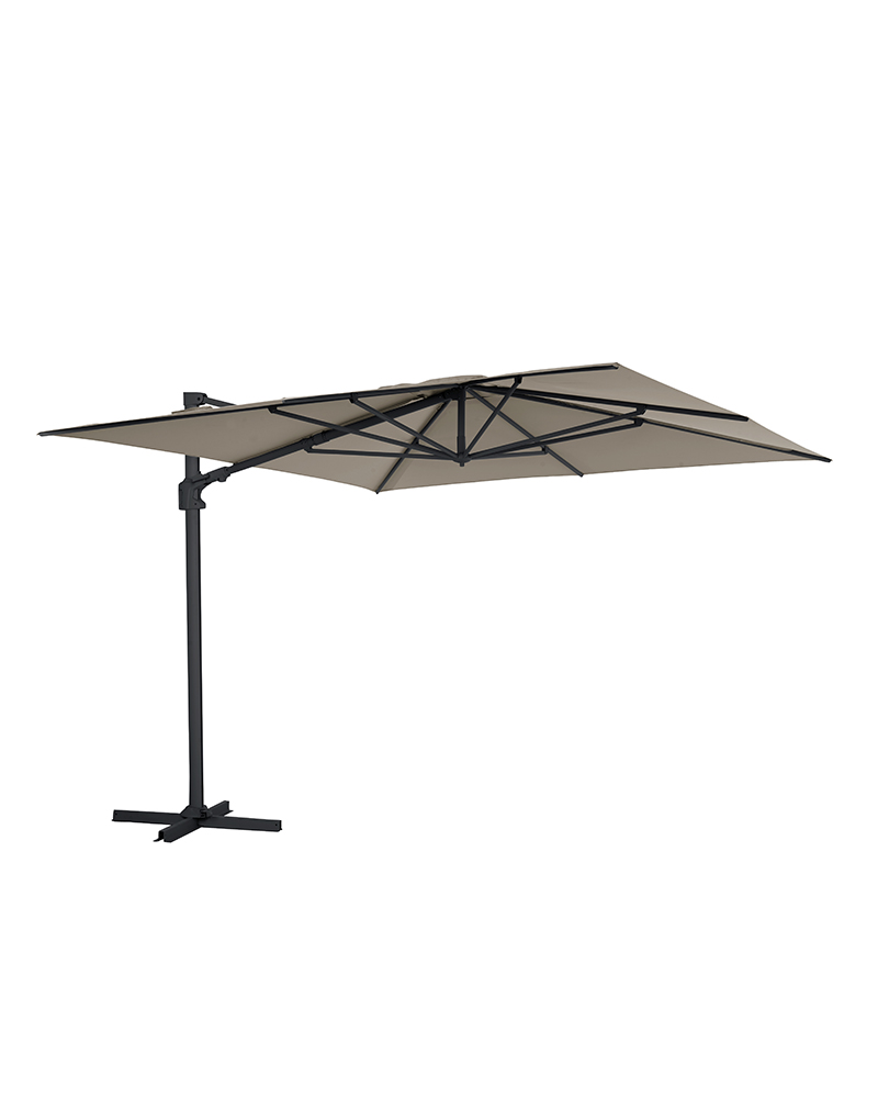 Vinovo er en flott sidehengt parasoll, laget i 250 grams polyester. Parasollen kan tiltes, har trinnløs regulering, og stangen er laget i aluminium. Kommer med kryss fot, som må fylles med paraoll-steiner. Stein følger ikke med.