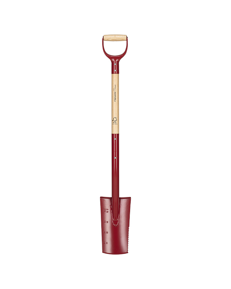 Redskapene i Classic-serien har et tidløst design som tåler hard bruk år ut og år inn. Classic staudespade er laget i kvalitetsmaterialer og har en sveiset konstruksjon. Den er med sitt slipte stålblad med en unik, sagtagget egg ideell for planting of deling av stauder. Spaden er laget av borstål for økt styrke, og skaftet er i FSC-sertifisert bøketre. Behagelig D-formet håndtak som passer både med og uten hansker.