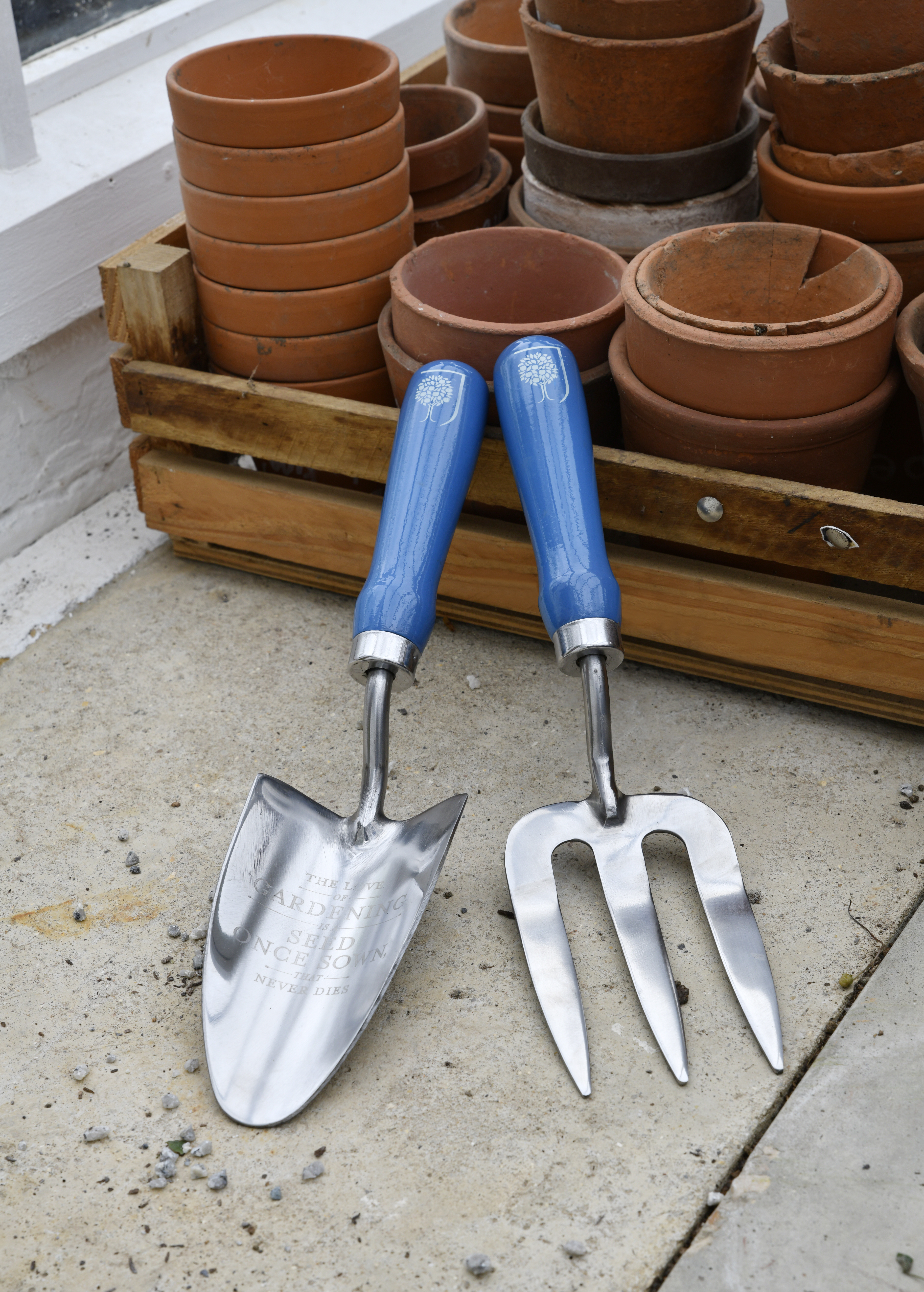 Håndspade og gaffel 'Blomstereng' i gaveeske