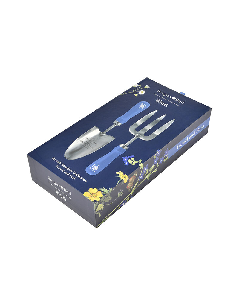 Plantespade og håndgaffel i serien 'Blomstereng' i vakker gaveeske. Med håndtak i FSC-sertifisert tre og spade og gaffel i rustfritt stål. Illustrasjonene på gaveesken dateres tilbake til 1815, og er spesielt utvalgt fra britiske samlinger med historisk, botanisk kunst. En perfekt gave til hobbygartneren! Burgon & Ball er en britisk merkevare med nesten 300 års erfaring i å lage hageredskaper og hagegaver av høy kvalitet. Med røtter i Sheffield og et nært samarbeid med Royal Horticultural Society (RHS), kombinerer de tradisjonelt håndverk med moderne design og bærekraftige materialer.