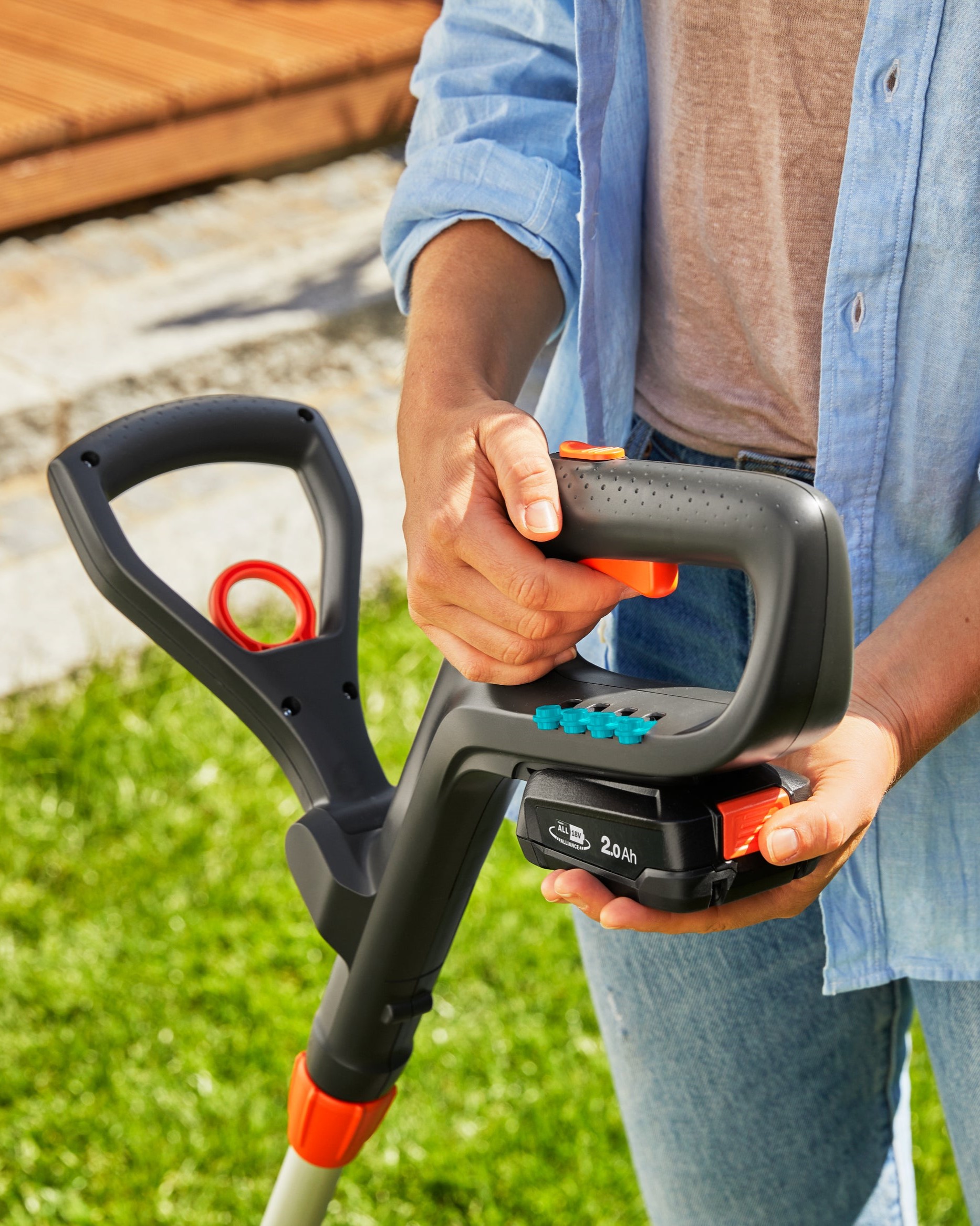 Kraftfull og lett gresstrimmer. Med justerbart håndtak og skaft. Opptil 45 minutter driftstid. 18V Power For All batteri (medfølger)
