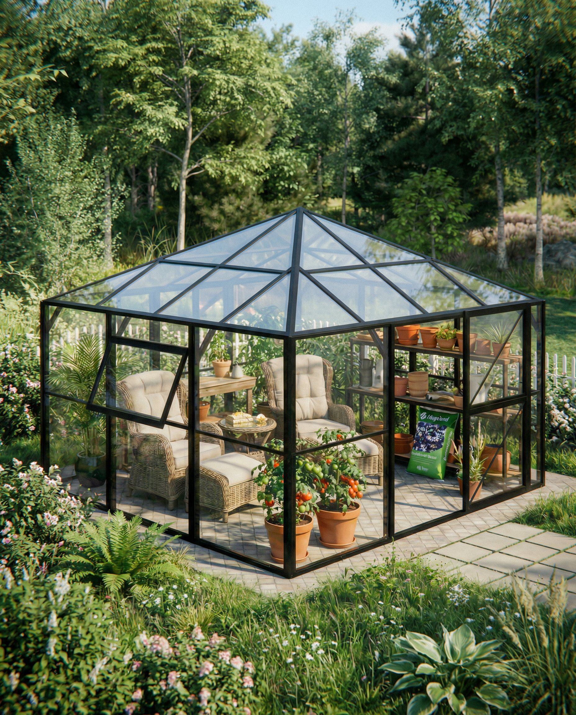 Hageland drivhus/utestue 9,9 m2 med glass svart