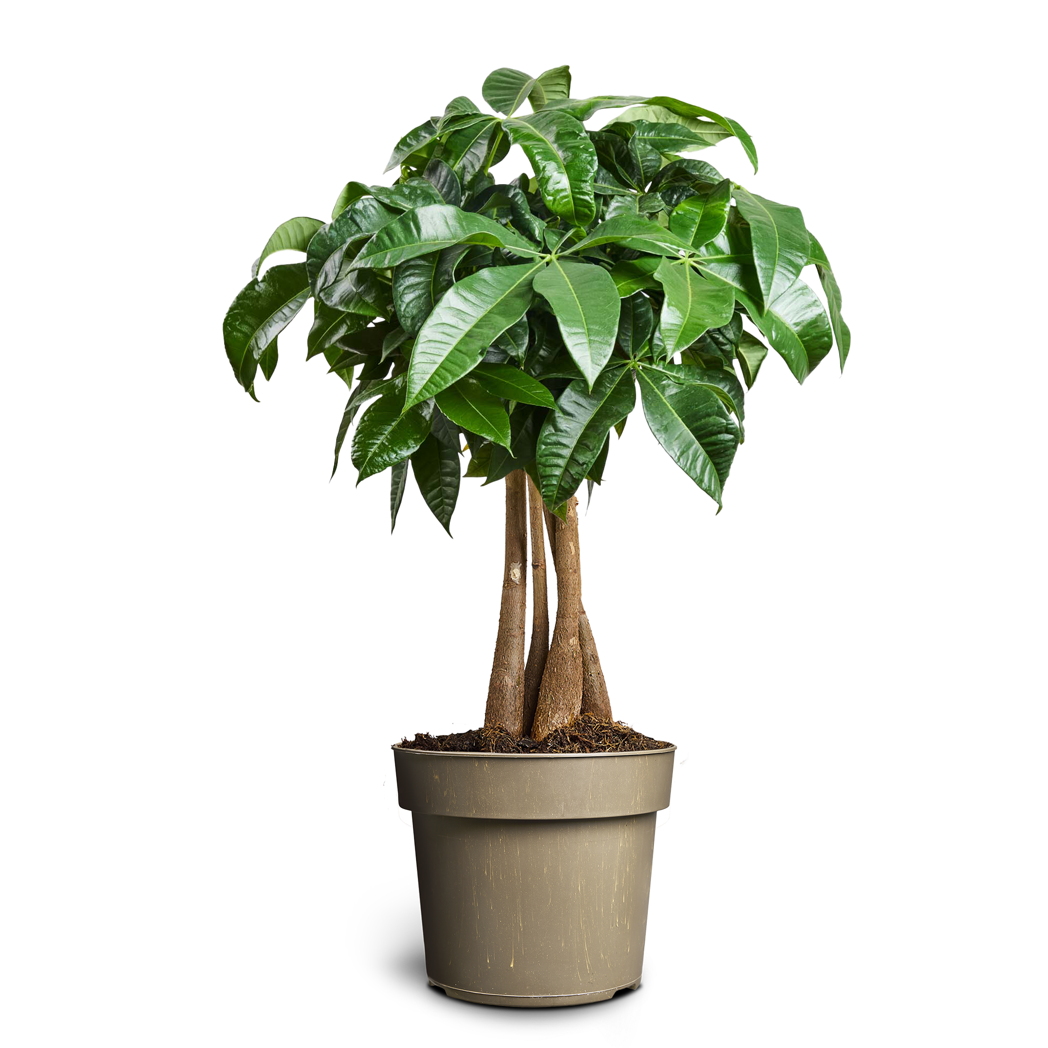 Pachira aquatica er en dekorativ grønn inneplante med flettet stamme og frodige blader som gir et elegant preg til hjemmet. Den er lettstelt og trives i lys uten direkte sol. Vann moderat og la jorden tørke lett mellom hver vanning. Med sitt stilrene utseende og enkle stell er Pachira aquatica perfekt for å skape et friskt og harmonisk miljø.