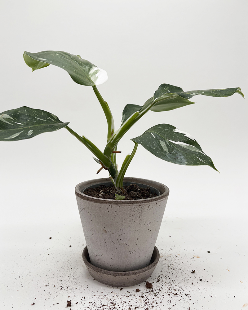 Philodendron 'White Princess' er en elegant grønn inneplante med unike blader i grønt, hvitt og rosa som gir et luksuriøst preg til hjemmet. Den er lettstelt og trives i lys uten direkte sol. Vann moderat og la jorden tørke lett mellom hver vanning.