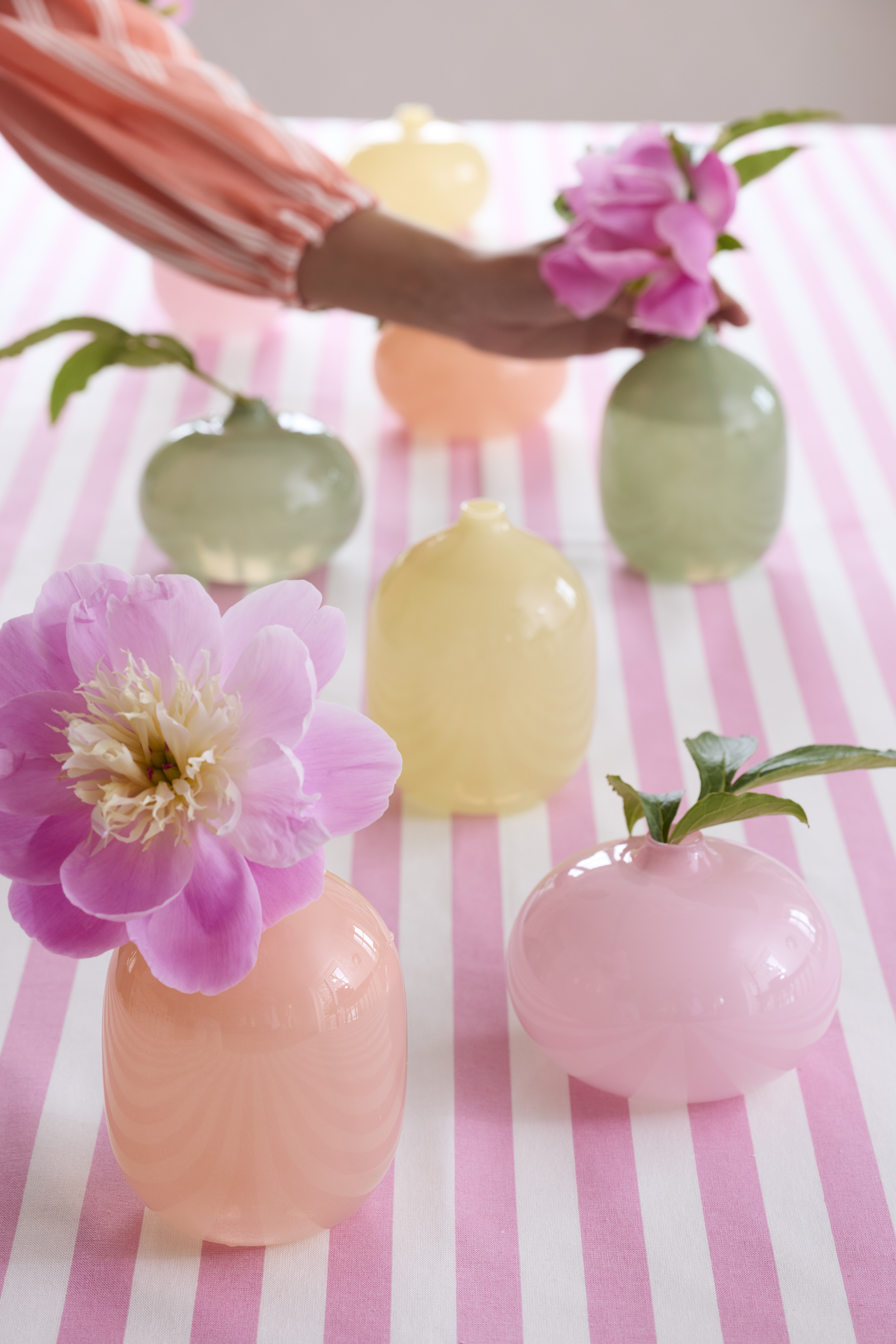 Nydelig glassvase i vakre pasteller. Kommer i 4 assorterte farger. Pris per stykk.
