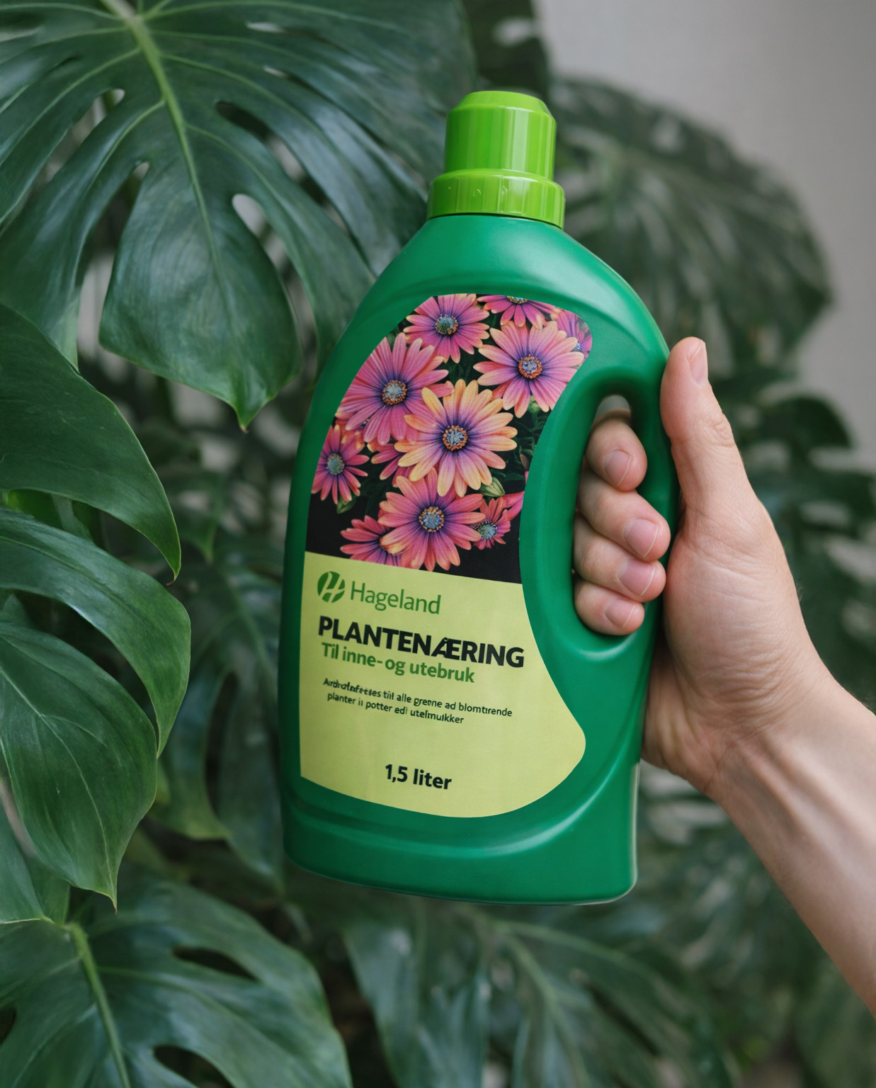 Hageland Plantenæring anbefales til alle grønne og blomstrende planter i potter og blomsterkasser både ute og inne! I vekstsesongen er det viktig å bruke gjødsel ved hver vanning, og det er angitt dosering bruksområder på flasken!
