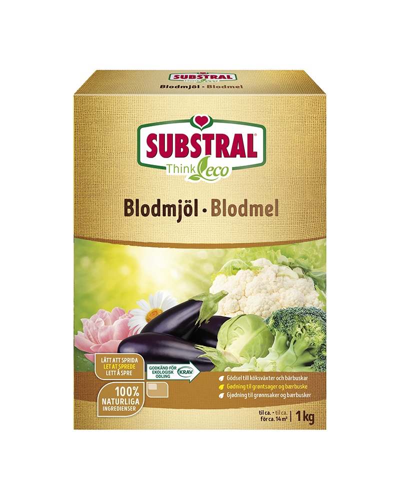 Blodmel er en naturlig gjødsel laget av tørket og finmalt dyreblod, og er svært rik på nitrogen, som er avgjørende for kraftig vekst og grønne, sunne blader. Den virker raskt og gir plantene en umiddelbar næringsboost, noe som gjør den ideell for grønnsaker, bærbusker og andre vekster som trenger ekstra nitrogen. Blodmel blandes i jorden eller strøs rundt plantene og vannes godt. Det er et effektivt og miljøvennlig alternativ som kan brukes i økologisk dyrking, og bidrar til frodig vekst og sterke planter.