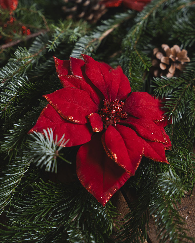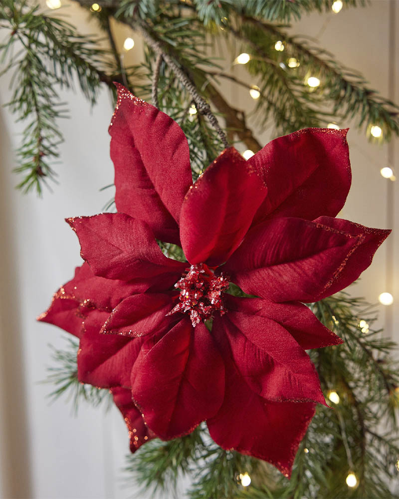 Juletrepynt juleblomst med klype Ø24 cm