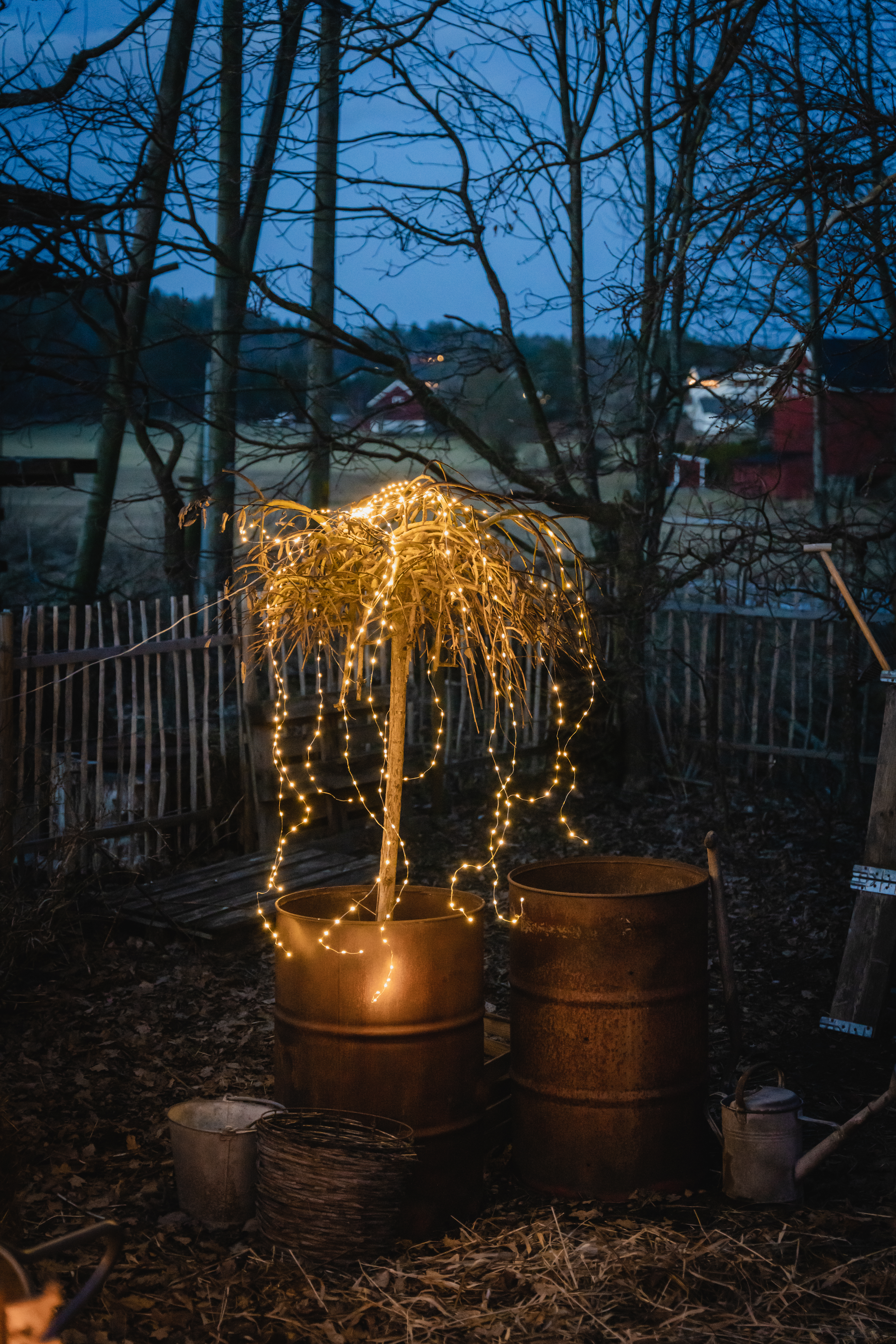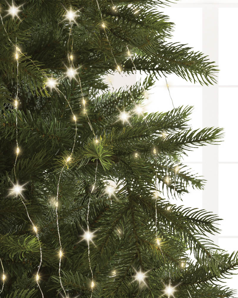 String er en lyslenke der lyset er festet på en tynn ståltråd som er lett å forme. Denne har 16 tråder med 320 microLED-pærer. Fest den i toppen av et tre, og la trådene slynge seg nedover treet.
