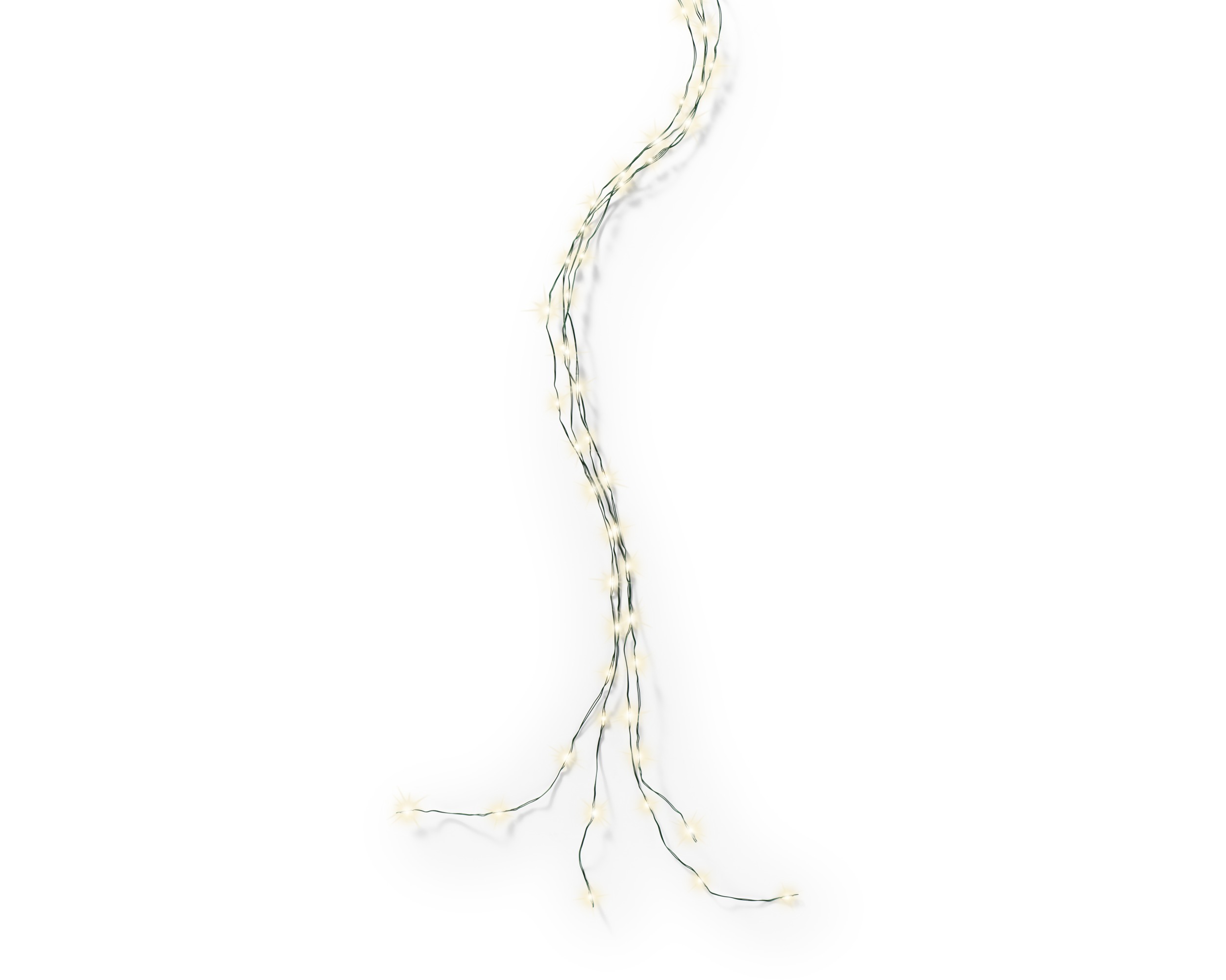 Vakker microLED lyslenke. Lenken har 240 lys fordelt på 3 meter, med blinkende effekt. Den har 5 meter lang ledekabel. Beregnet på utendørsbruk.