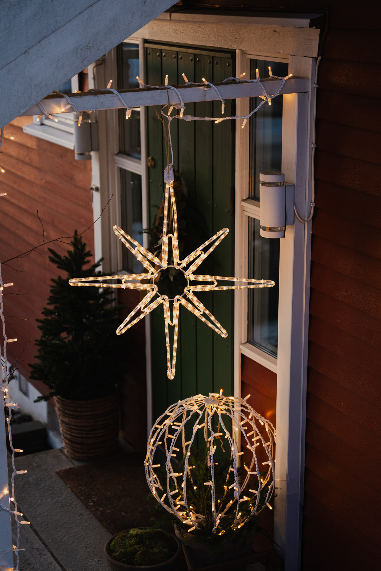 Vakker stjerne som lyser opp uterommet. Stjernen er 75 cm bred og har 192 lys. Pro-lights Connect er vår kraftigste lysslyngeserie med robuste kabler som tåler all slags vær. Serien er et utbyggbart systemlys med opptil 2 000 lys per uttak. Serien finnes i både i sort og hvit kabel, og er kompatibel med en mengde ulike dekor-elementer slik at du kan sette sammen din helt unike lysslynge. Serien har 5 års garanti. Husk at startsett må kjøpes separat.