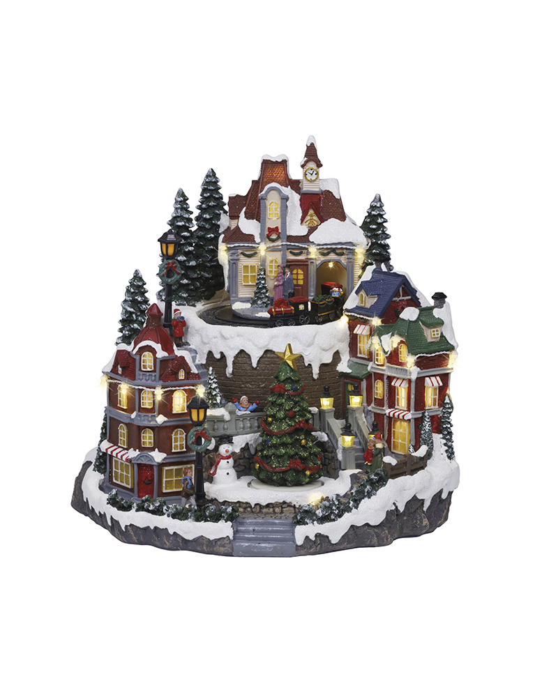 Juleby hus rundt juletre