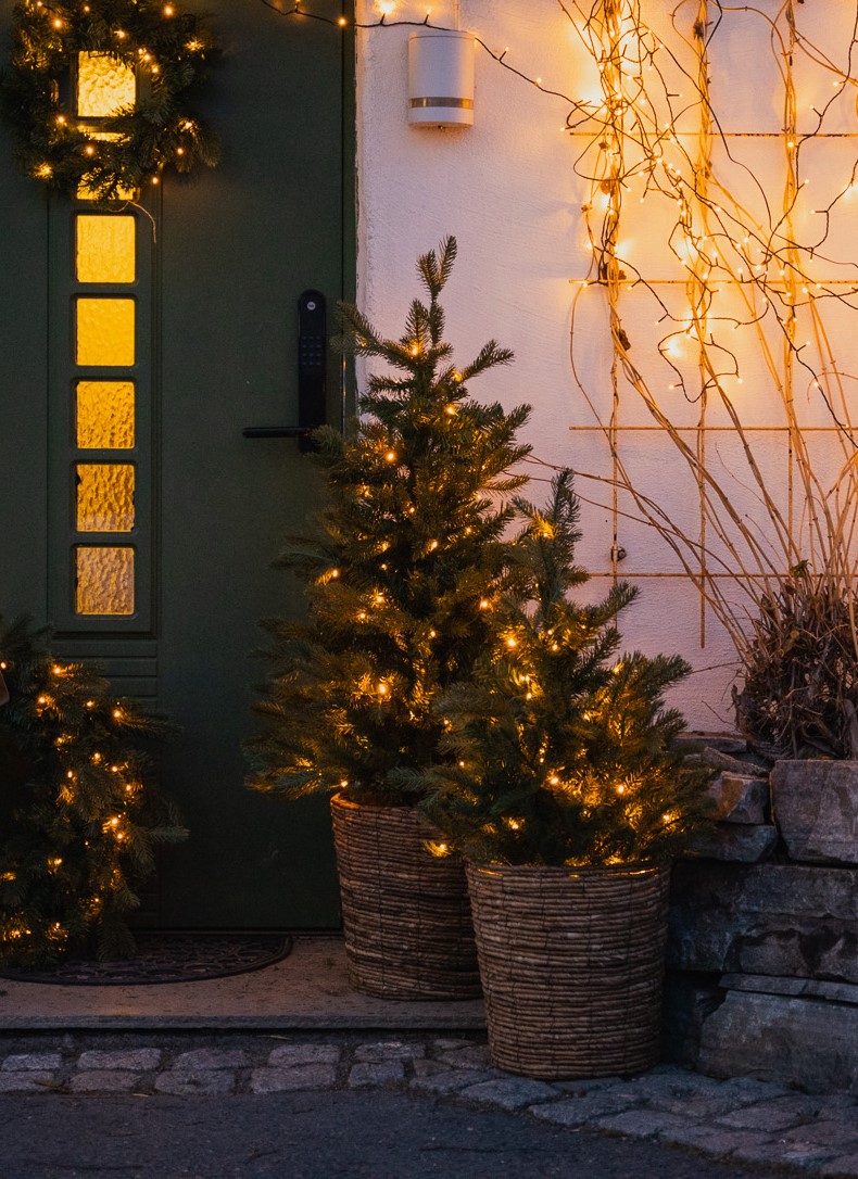 Naturtro tre med 80 LEDlys og timer (8 timer på/16 timer av). Batteri 3xAA (ikke inkludert).