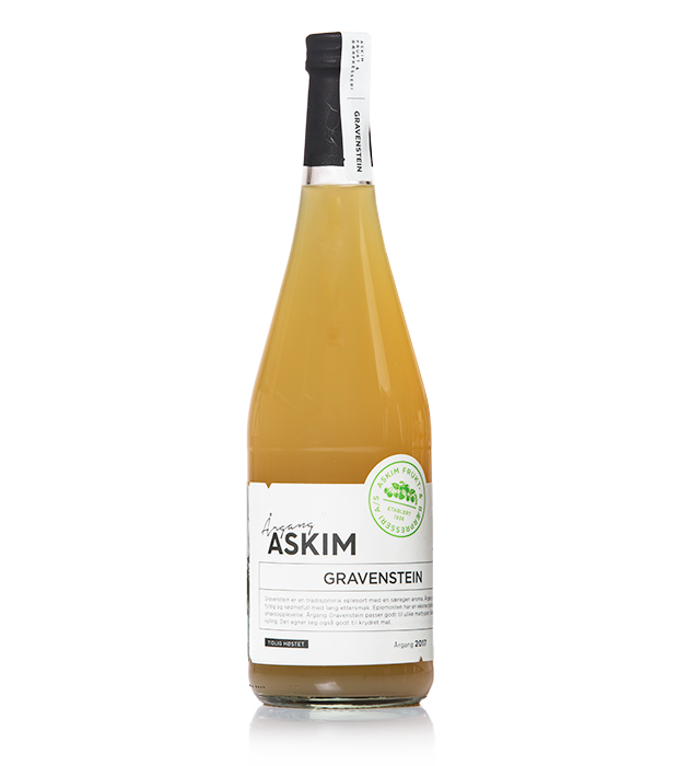 Askim Gravenstein er fyldig og sødmefull med lang ettersmak, og passer godt til ulike matretter som fisk, skalldyr og kylling. Den egner seg også til godt krydret mat. Askim Frukt- og Bærpresseri har levert lokalprodusert saft, syltetøy og gelé i snart 90 år. Produksjonen bygger på norsk tradisjon og ekte råvarer, noe som sikrer høy kvalitet og den gode smaken som har vært en del av norske hjem i generasjoner.