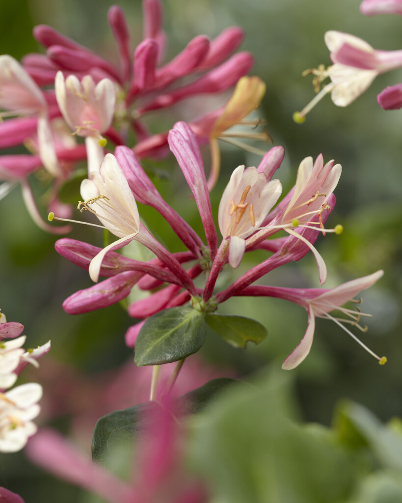 Villkaprifol Belgica Select Lonicera periclymenum er en nøysom klatreplante som kjennetegnes av en magisk duft og dekorative blomster i røde toner med gul innside fra juni til september. Den får senere små røde bær som gir ekstra prydverdi. Planten vokser godt i både sol og skygge og passer på espalier eller vegg der den kan slynge seg fritt. Villkaprifol er lettstelt og trives i jevnt fuktig og humusrik jord. Gi planten støtte og klipp forsiktig etter behov for å fremme ny vekst.