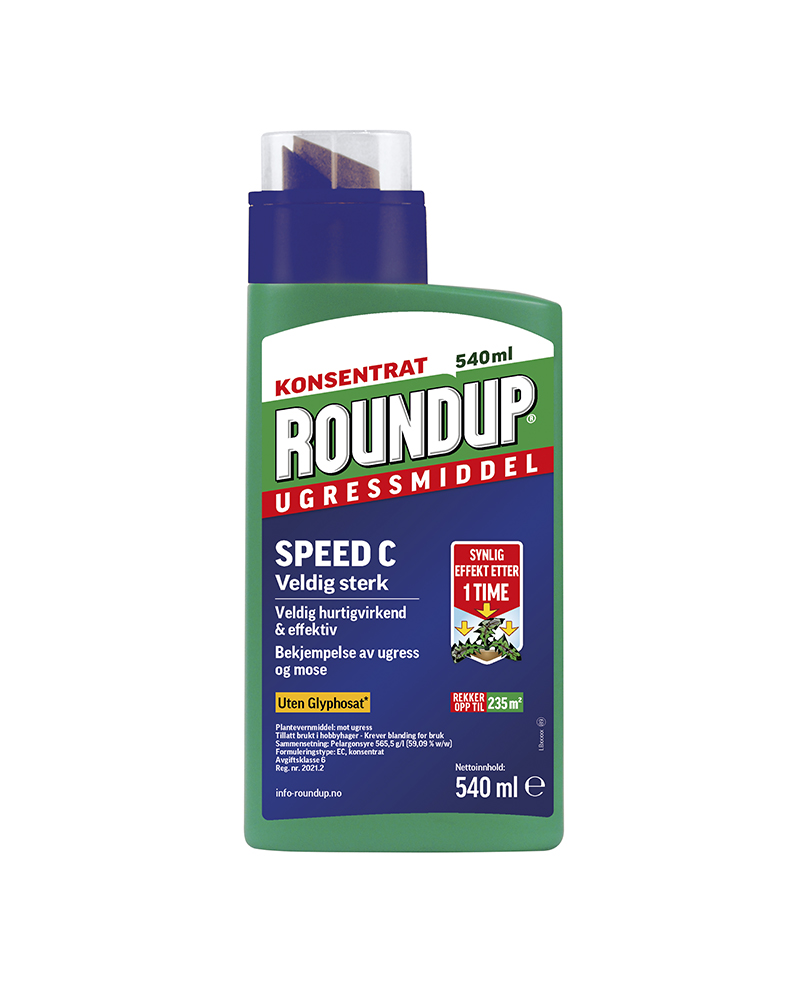 Roundup Speed Konsentrat med miljøvennlig pelargonsyre gir rask og effektiv bekjempelse av ugress i hage og gårdsplass. Middelet virker på bladene og får ugresset til å visne innen få timer. Bland konsentratet med vann og påfør med sprøyte for et presist resultat.